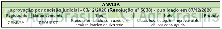 Aprovação por decisão judicial – 03/12/2020 (Resolução nº 5038) – publicado em 07/12/2020 Registro de agrotóxicos Publicado em: 9 de dezembro de 2020
