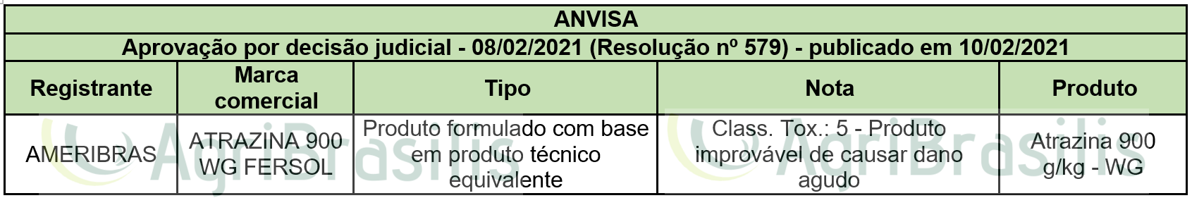 Aprovação por decisão judicial – 08/02/2021 (Resolução nº 579) – publicado em 10/02/2021 Registro de agrotóxicos Publicado em: 11 de fevereiro de 2021