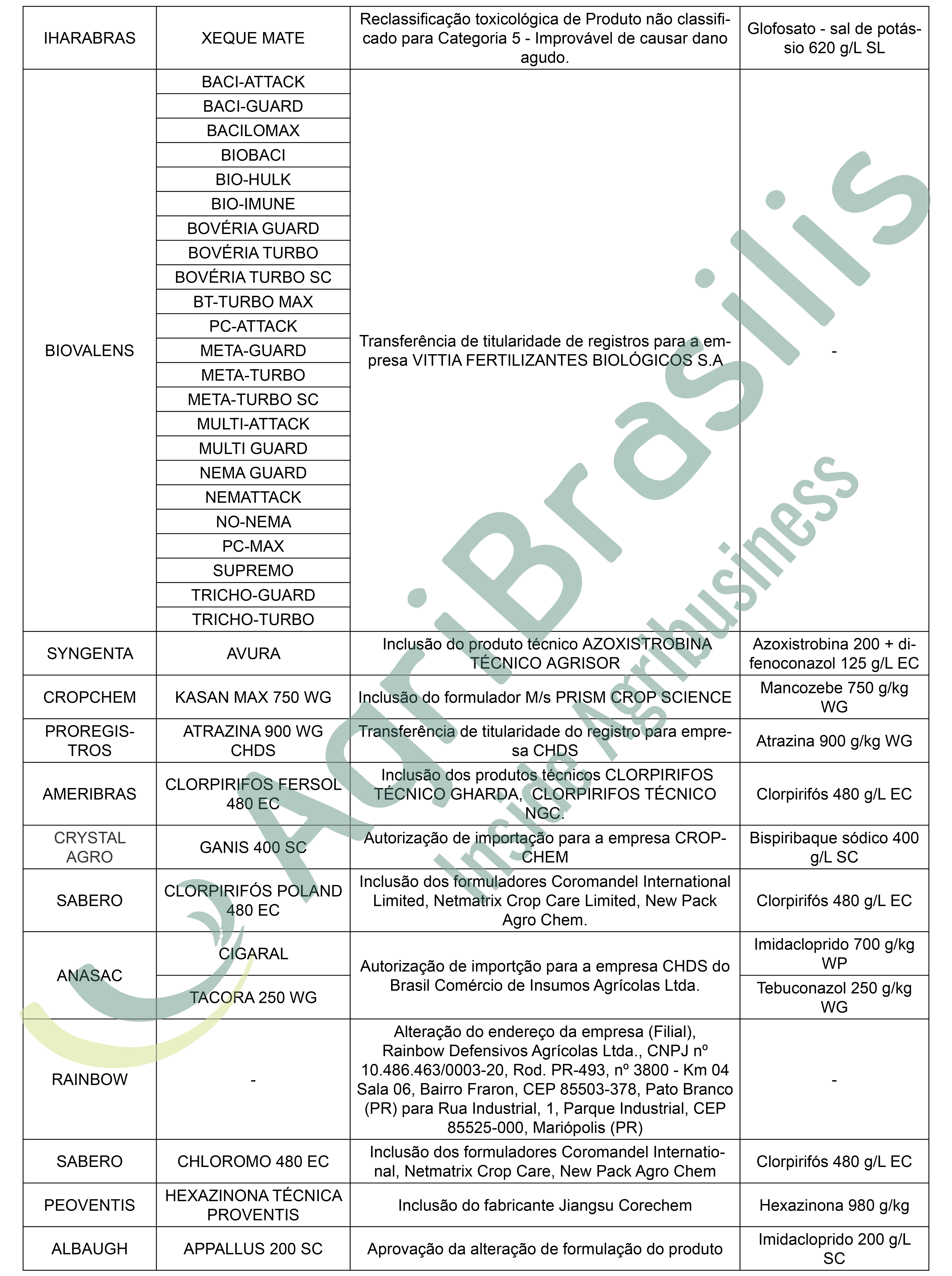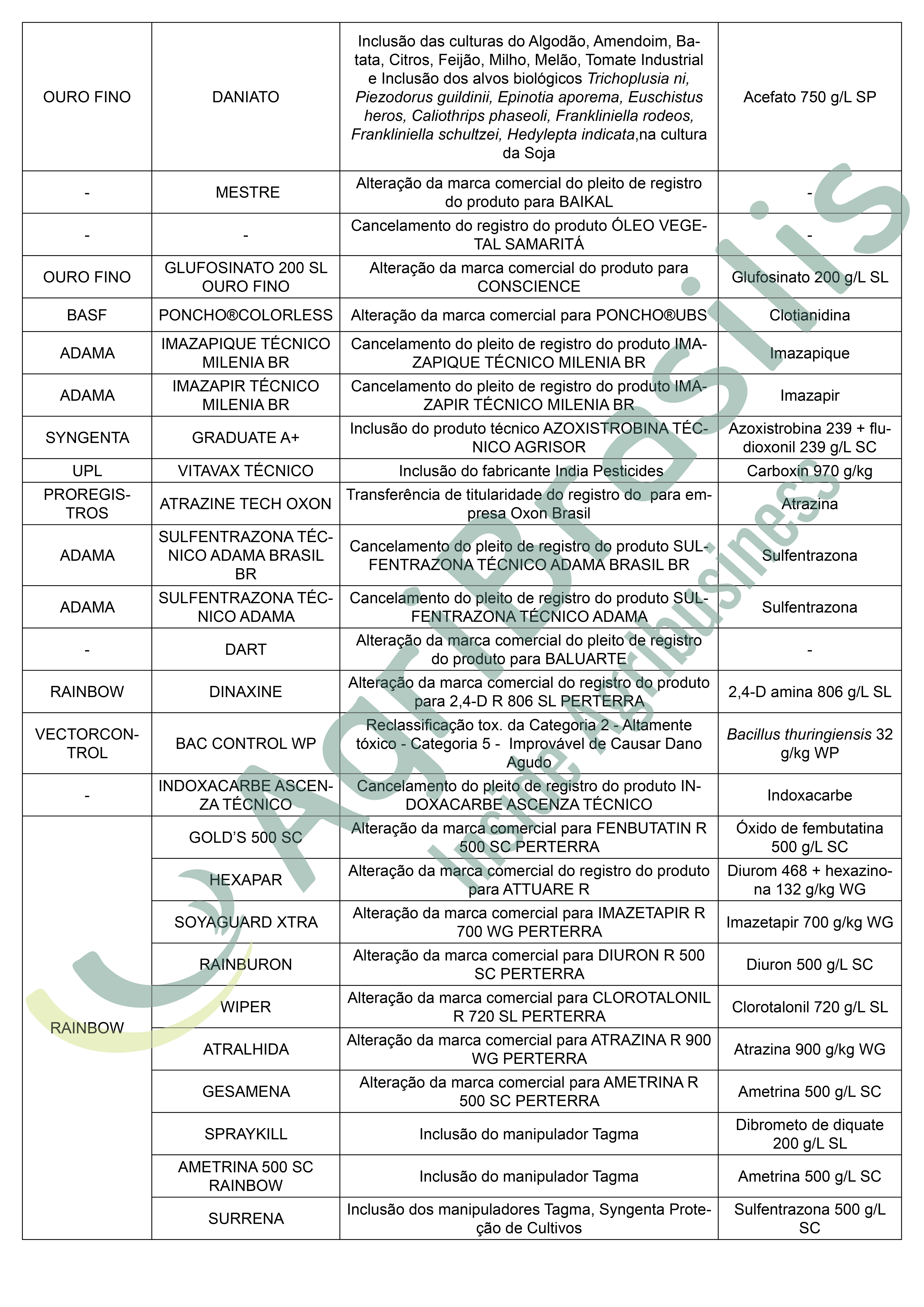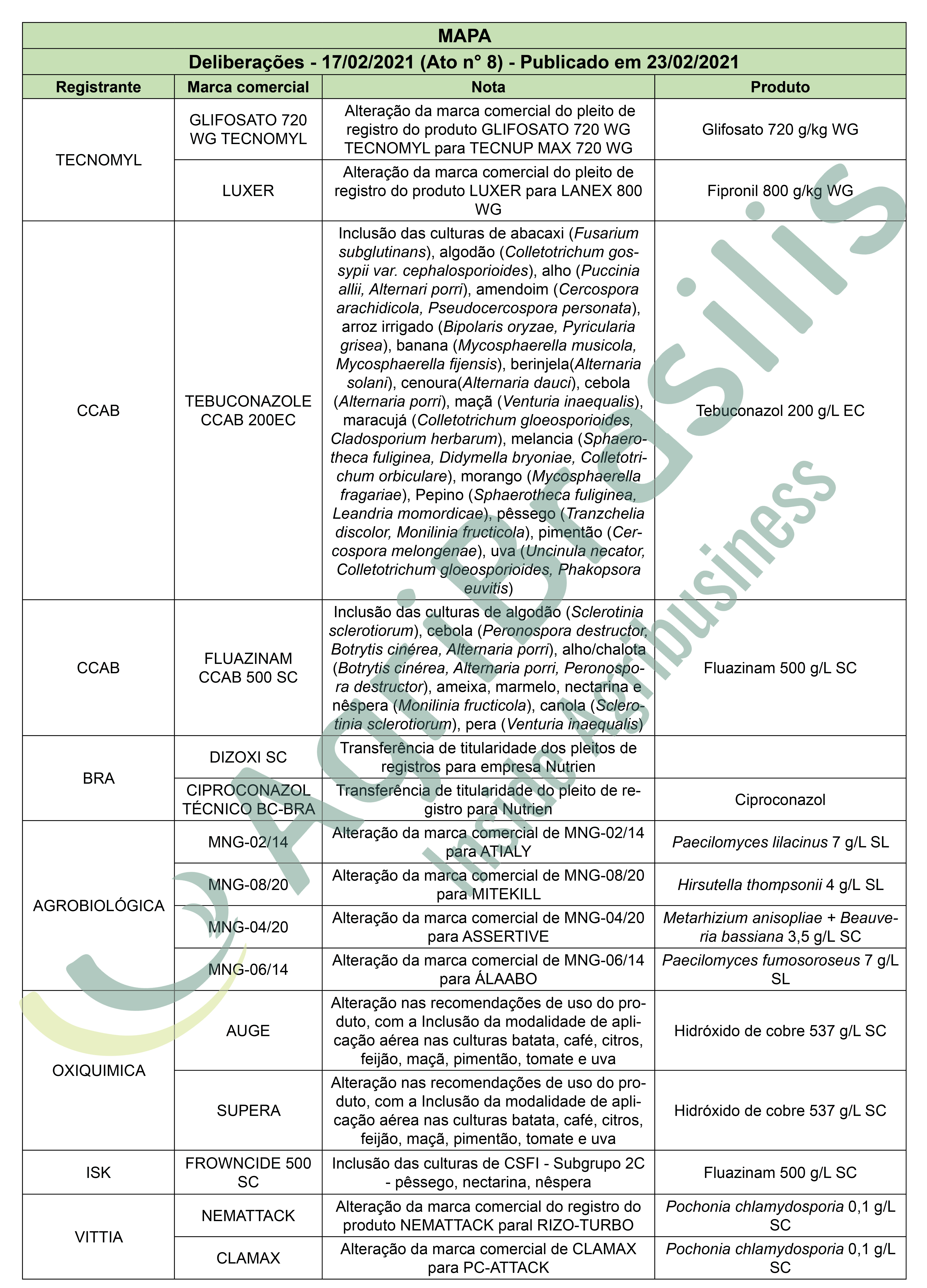 Deliberações – 17/02/2021 (Ato n° 8) – Publicado em 23/02/2021 Registro de agrotóxicos Publicado em: 26 de fevereiro de 2021