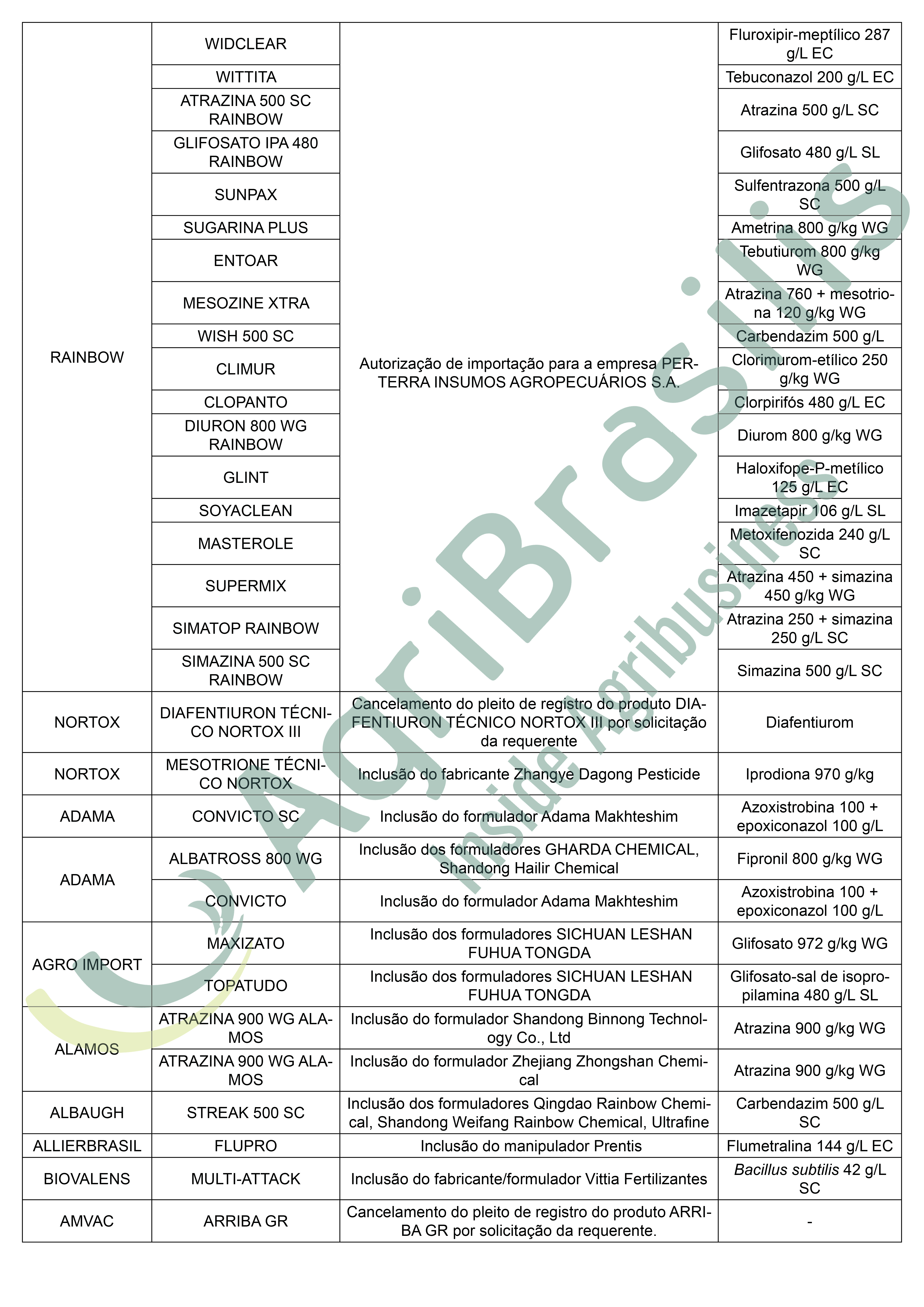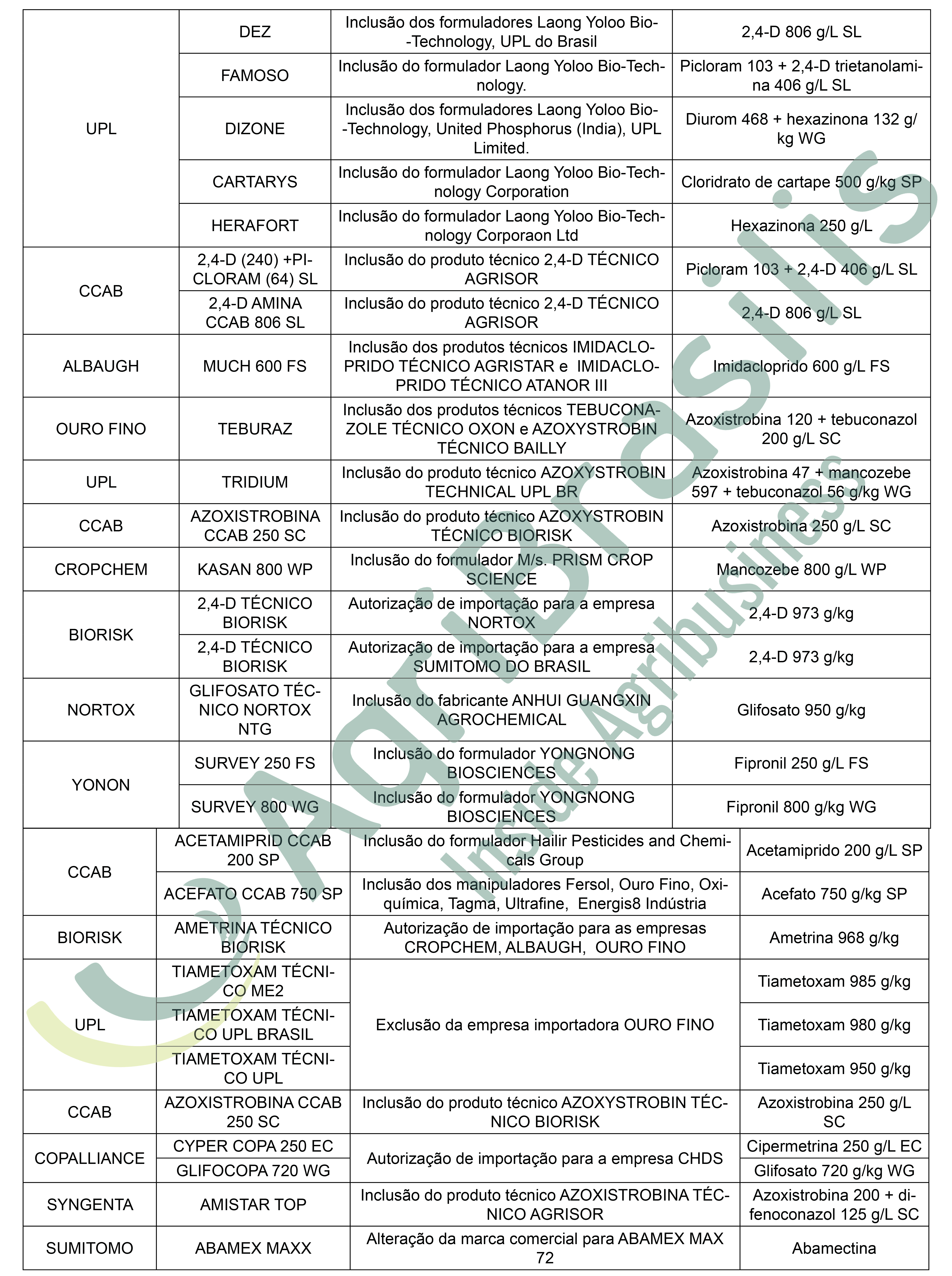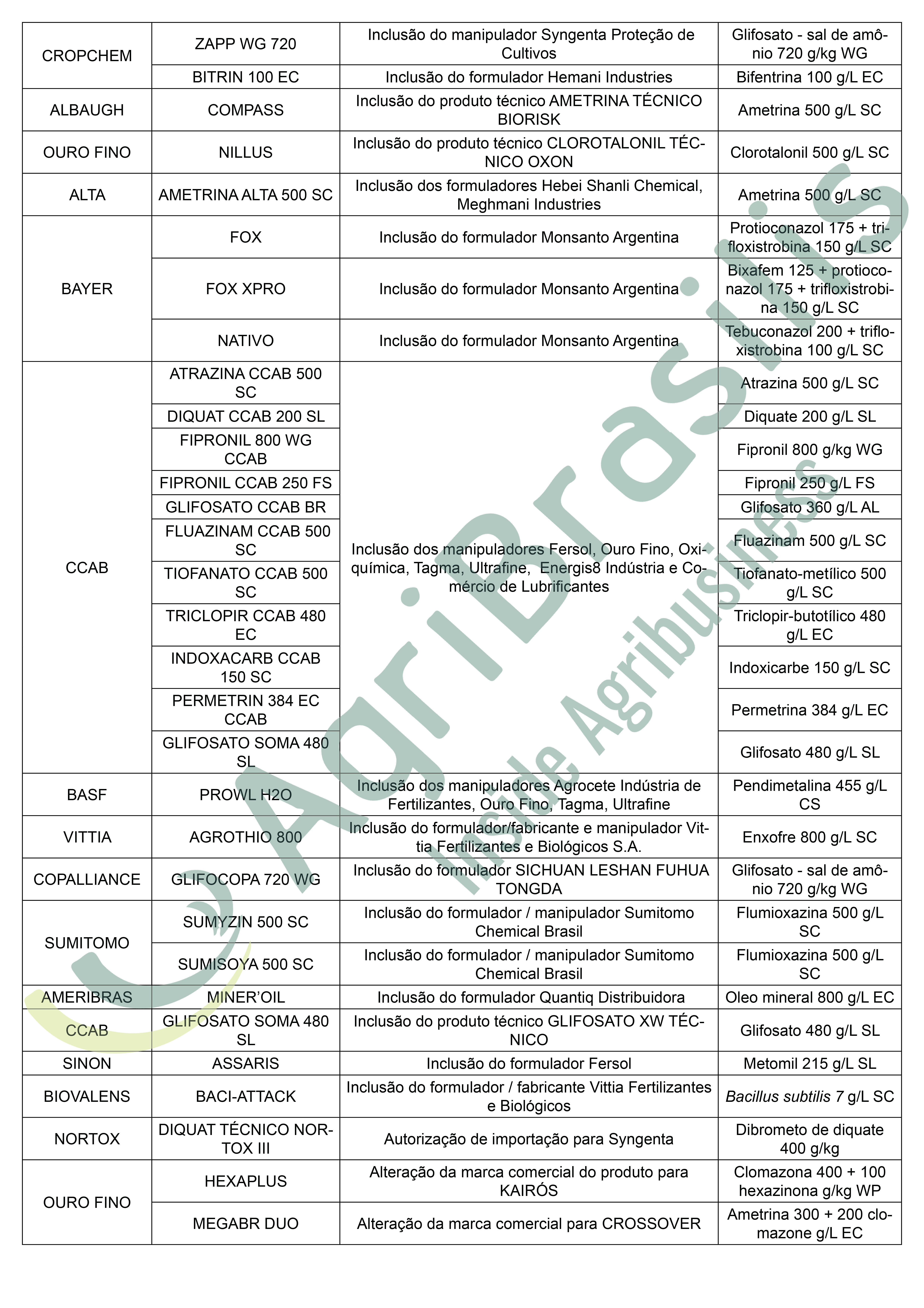 Deliberações – 17/02/2021 (Ato n° 8) – Publicado em 23/02/2021 Registro de agrotóxicos Publicado em: 26 de fevereiro de 2021