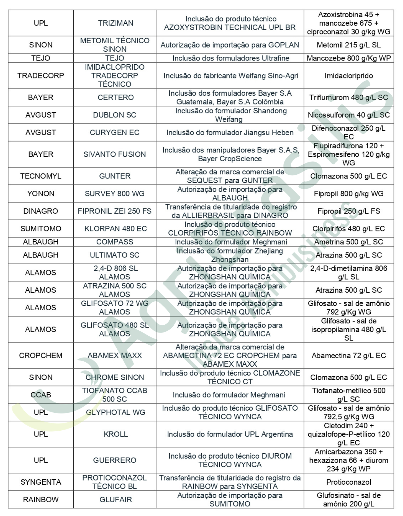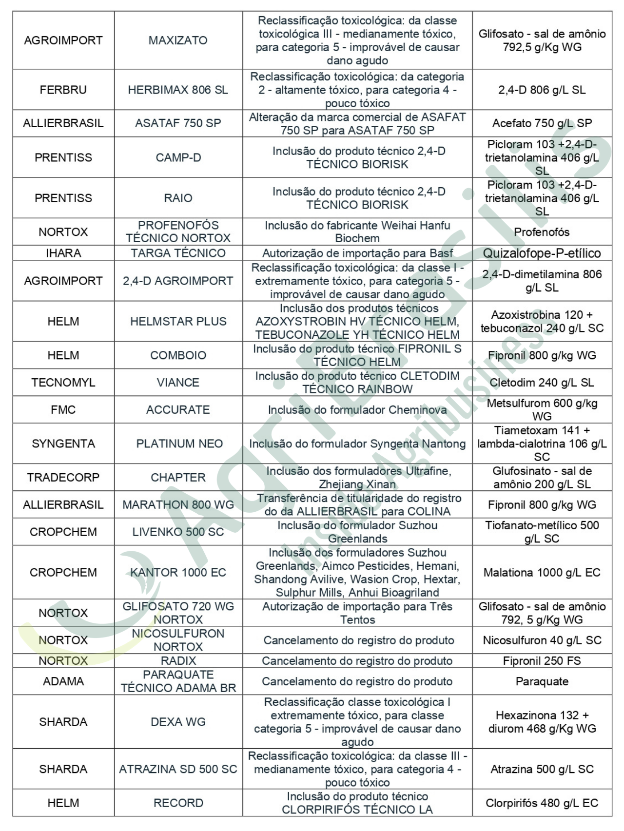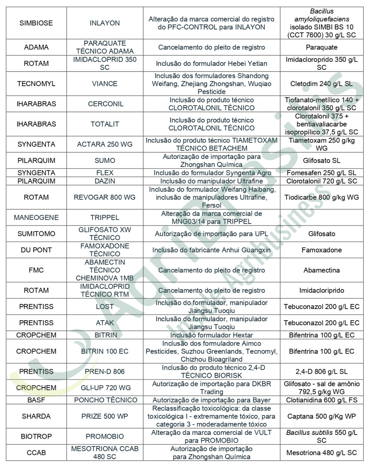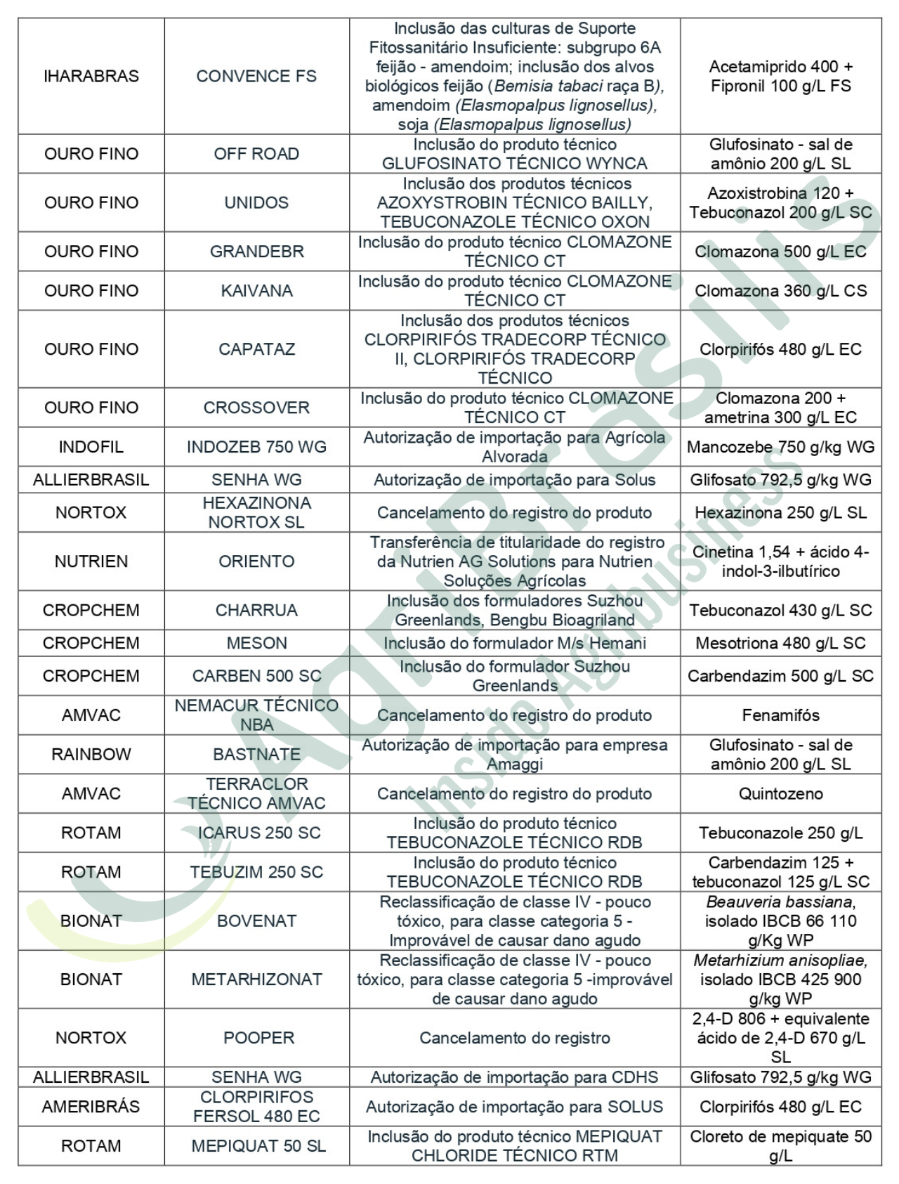 Deliberações – 10/05/2021 (Ato n° 23) – Publicado em 18/05/2021 Registro de agrotóxicos Publicado em: 31 de maio de 2021