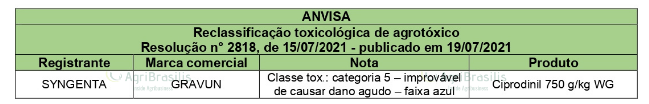 Reclassificação toxicológica de agrotóxico Resolução n° 2818, de 15/07/2021 – publicado em 19/07/2021 Registro de agrotóxicos Publicado em: 20 de julho de 2021