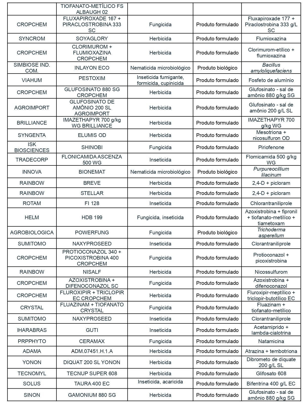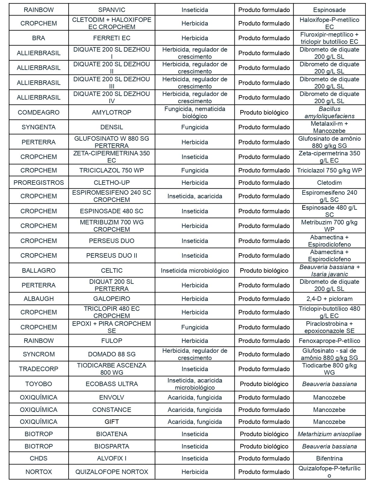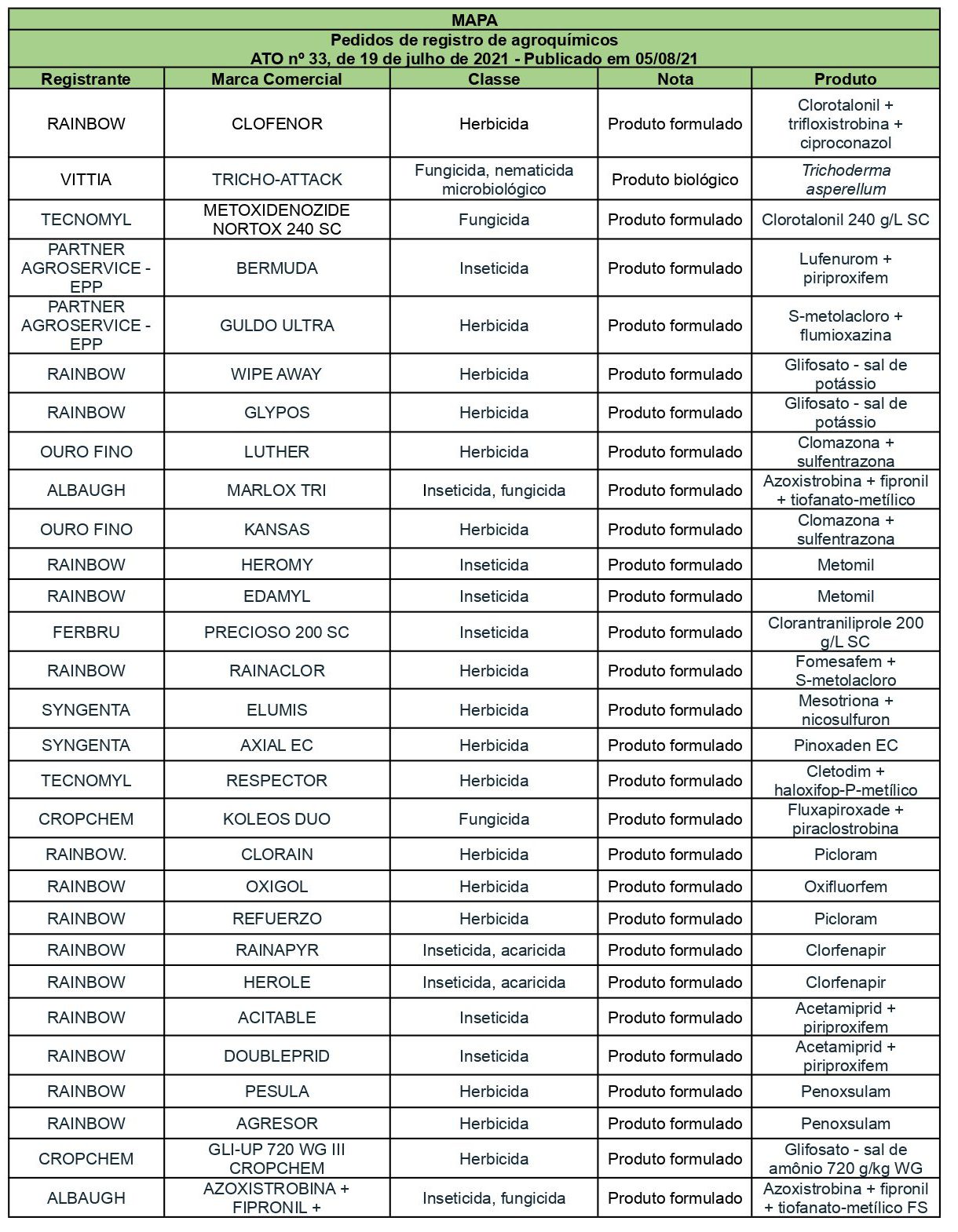 Pedidos de registro de agroquímicos – ATO nº 33, de 19 de julho de 2021 – Publicado em 05/08/21