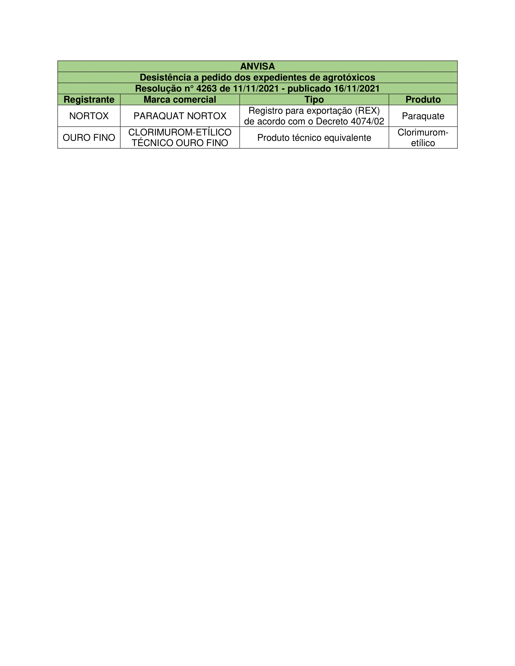 Desistência a pedido dos expedientes de agrotóxicos – Resolução n° 4263 de 11/11/2021 – publicado 16/11/2021 Agrotóxicos, Defensivos agrícolas Publicado em: 18 de novembro de 2021