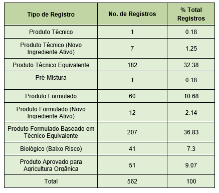 Importante destacar que a preocupação em relação ao uso de produtos menos tóxicos à saúde tem mostrado resultados. Em 2021, 78% dos registros aprovados foram classificados nas categorias consideradas de menor toxicidade.