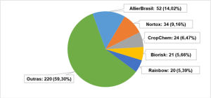 Dentre os Produtos Formulados Químicos aprovados, a grande maioria é de produtos baseados em produtos técnicos equivalentes, também denominados “genéricos” (371, ou 86,9% dos PF químicos). Essa categoria de produto é a mais importante para as empresas que buscam acesso ao mercado brasileiro, principalmente empresas da China e Índia, que são os principais fornecedores de produtos genéricos.