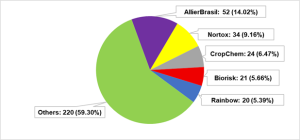 Among the approved Chemical Formulated Products, the vast majority are products based on Equivalent Technical Products, also referred to as “generics” (371, or 86.9% of Chemical Formulated Products). This product category is the most important for companies seeking to access the Brazilian market, especially companies from China and India, which are the main suppliers of generic products.