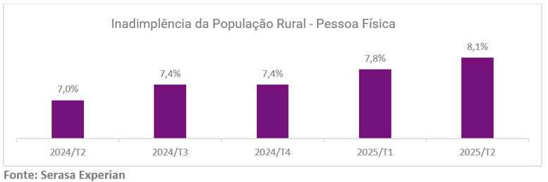 Inadimplência dos produtores rurais subiu para 8,1% no 2T25, refletindo desafios de fluxo de caixa e endividamento acumulado no setor, apesar da recuperação das lavouras. (Serasa Experian)